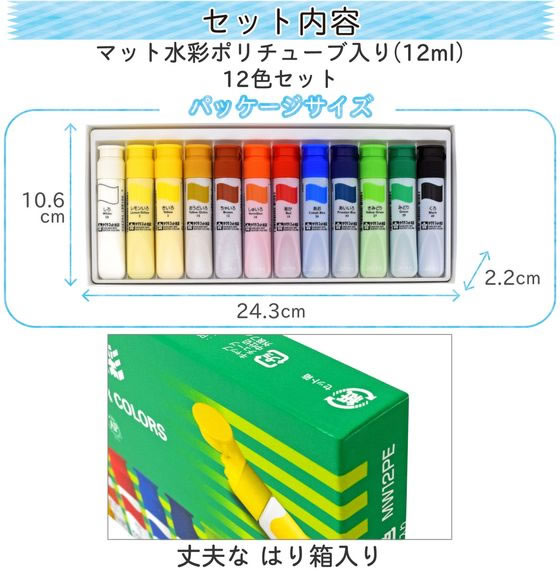 サクラ マット水彩12色 ポリチューブ入り(12ml) MW12PE 1箱(ご注文単位1箱)【直送品】