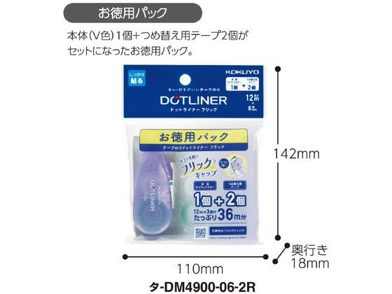 コクヨ テープのり ドットライナーフリック 本体 お徳用パック 1パック(ご注文単位1パック)【直送品】