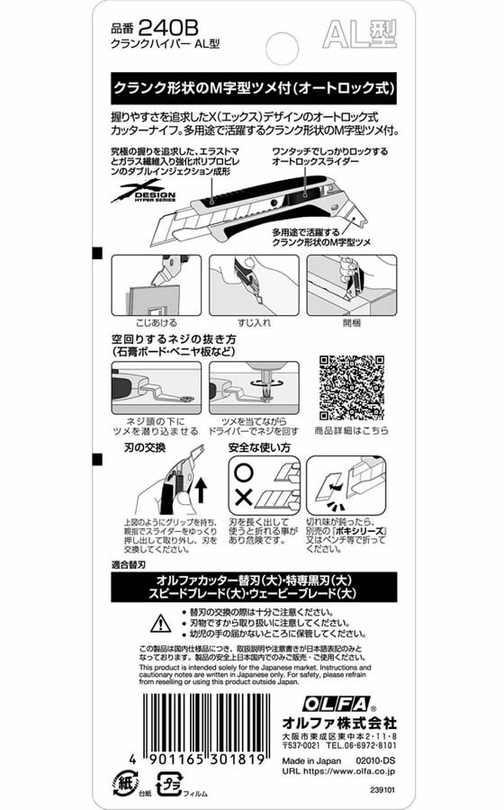 オルファ カッター 大型刃 クランクハイパーAL型 オートロック 240B 1本(ご注文単位1本)【直送品】