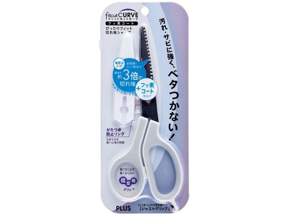 プラス はさみ フィットカットカーブ フッ素コート ホワイト×グレー34-524 1本(ご注文単位1本)【直送品】
