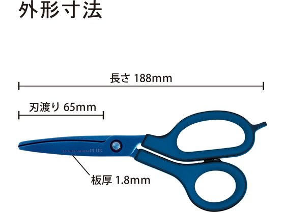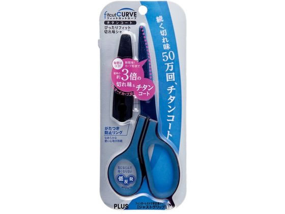 プラス はさみ フィットカットカーブ チタンコート チタンブルー 34-526 1個(ご注文単位1個)【直送品】