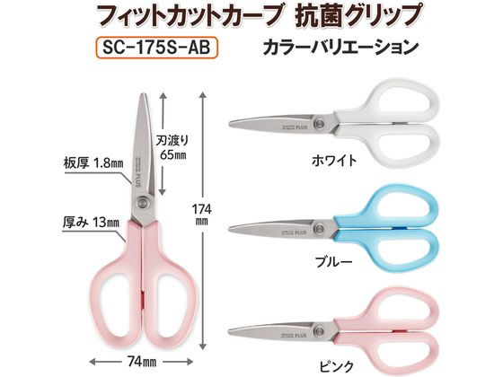 プラス はさみ フィットカットカーブ抗菌グリップ ピンクSC-175S-AB 1本(ご注文単位1本)【直送品】