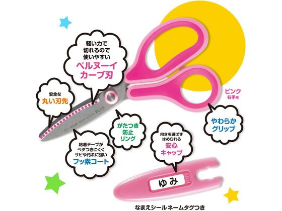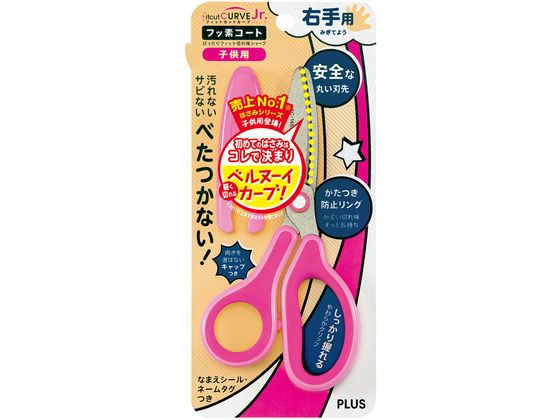 プラス はさみ フィットカットカーブ ジュニア フッ素コート ピンク34-671 1個(ご注文単位1個)【直送品】