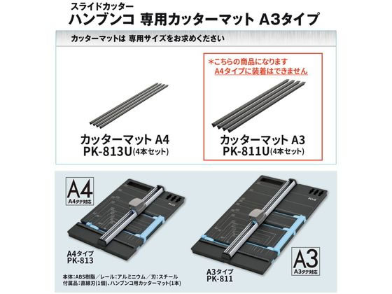 プラス ハンブンコ用カッターマット A3 4本 PK-811U 26-473 1パック(ご注文単位1パック)【直送品】