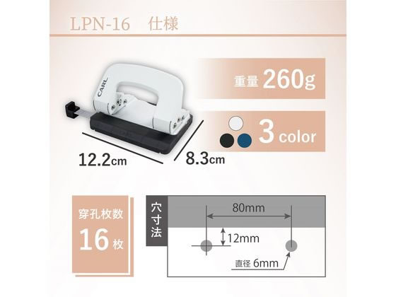カール事務器 2穴パンチ アリシス ブラック 穿孔枚数16枚 LPN-16-K 1個(ご注文単位1個)【直送品】