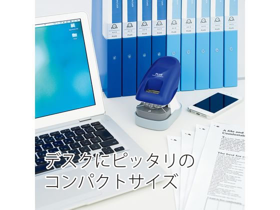 プラス 針なしホッチキス ペーパークリンチ卓上型 12枚とじ ブルー 1個(ご注文単位1個)【直送品】