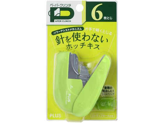 プラス 針なしホッチキス ペーパークリンチ グリーン SL-106NB 31123 1個(ご注文単位1個)【直送品】