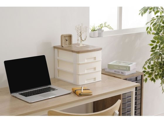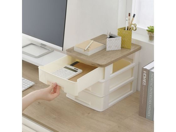 アイリスオーヤマ ウッドトップデスクチェスト アッシュブラウン アイボリー 1台(ご注文単位1台)【直送品】