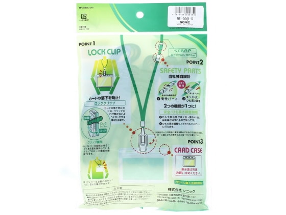 ソニック IDカード 吊下げひも 10本入 緑 NF-558-G 1袋(ご注文単位1袋)【直送品】