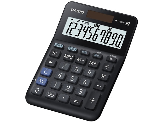 カシオ W税率電卓 ミニジャストタイプ 10桁 黒 MW-100TCBK-N 1台(ご注文単位1台)【直送品】