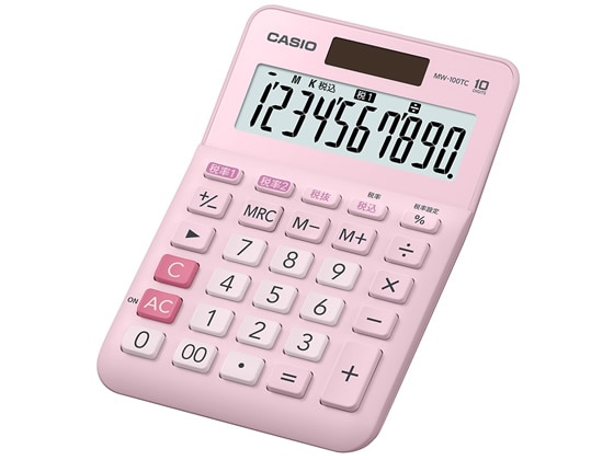 カシオ W税率電卓 ミニジャストタイプ 10桁 ピンク MW-100TCPK-N 1台(ご注文単位1台)【直送品】