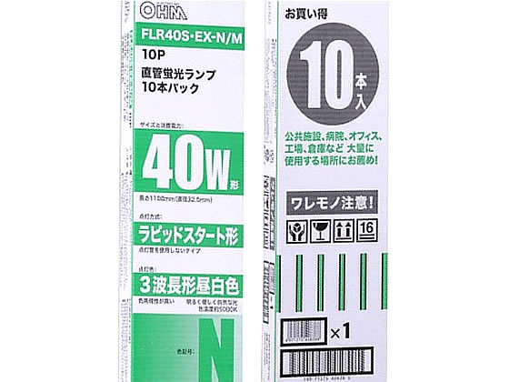 オーム電機 直管ラピッドスタート40W 昼白色10本 FLR40SEXNM10P 1箱(ご注文単位1箱)【直送品】