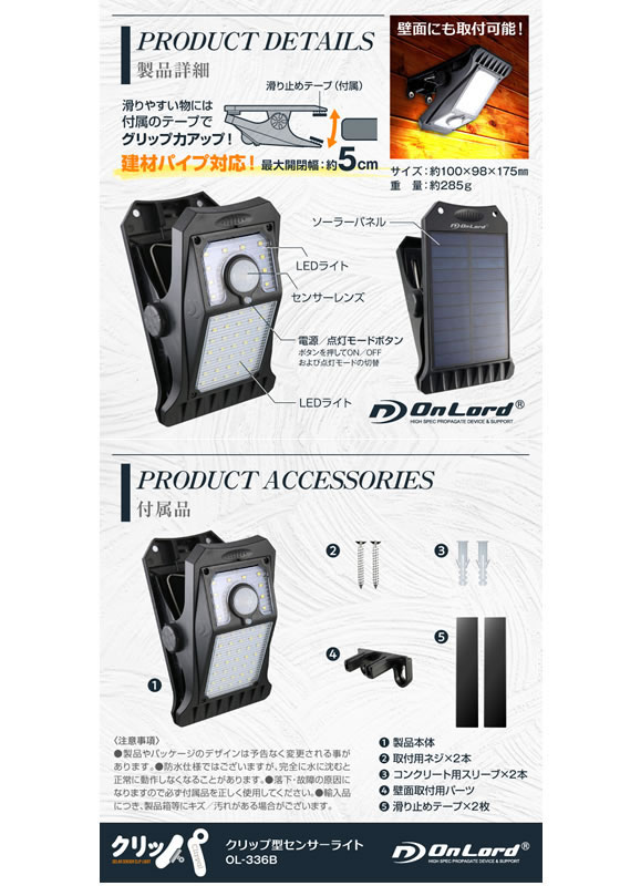 オンスクエア クリップセンサーライト(クリッパ) OL-336B 1台(ご注文単位1台)【直送品】
