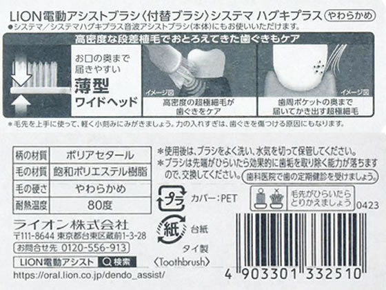 ライオン 電動アシストブラシ 付替 システマ ハグキプラス やわらか 2本 1個(ご注文単位1個)【直送品】