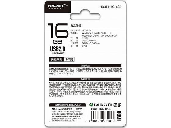 HIDISC USB2.0メモリー 16GB HDUF113C16G2 1個(ご注文単位1個)【直送品】