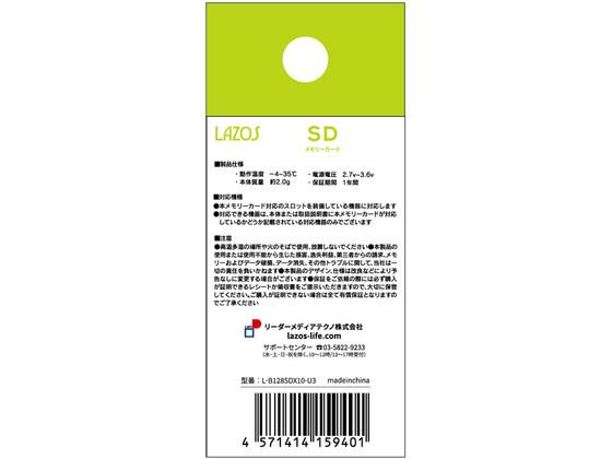 Lazos SDXCメモリーカード 128GB L-B128SDHX10-U3 1個(ご注文単位1個)【直送品】