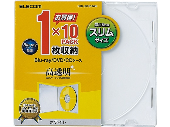 エレコム CD DVDスリムプラケース ホワイト 10枚 CCD-JSCS10WH 1パック(ご注文単位1パック)【直送品】