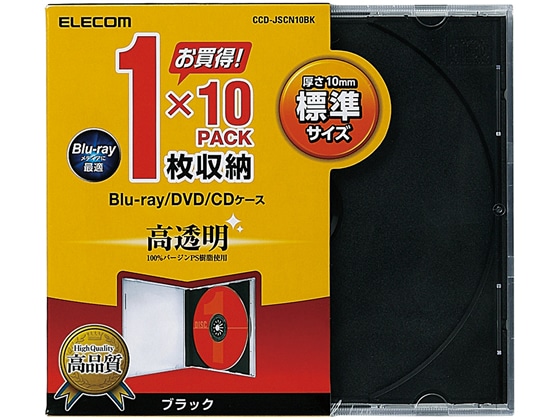 エレコム Blu-ray DVD CDケース ブラック 10枚 1パック(ご注文単位1パック)【直送品】