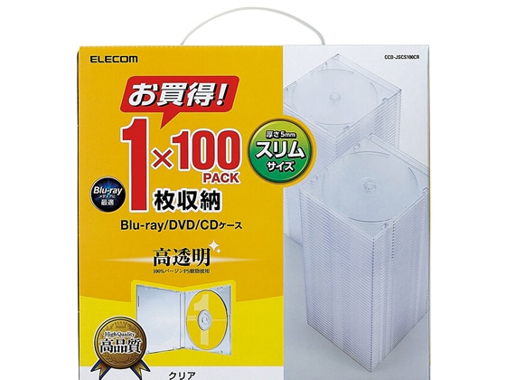 エレコム Blu-ray DVD CDスリムケース クリア 100枚 1パック(ご注文単位1パック)【直送品】