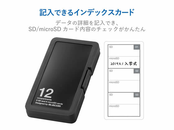 エレコム メモリカードケース SD6枚+microSD6枚 CMC-SDCPP12BK 1個(ご注文単位1個)【直送品】