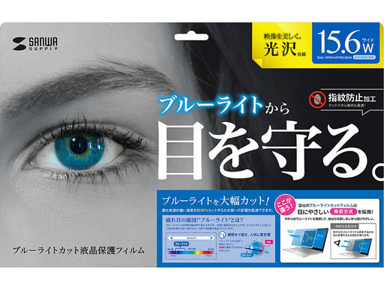 サンワサプライ 15.6型ワイドブルーライトカット液晶保護指紋防止フィルム 1枚(ご注文単位1枚)【直送品】