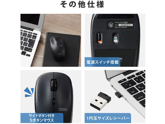 エレコム ワイヤレスマウス 抗菌 BlueLED 5ボタン M-BL21DBKBK 1個(ご注文単位1個)【直送品】