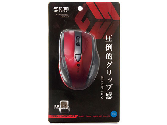 サンワサプライ 静音ワイヤレスブルーLEDマウス5ボタンレッド MA-WBL166R 1個(ご注文単位1個)【直送品】