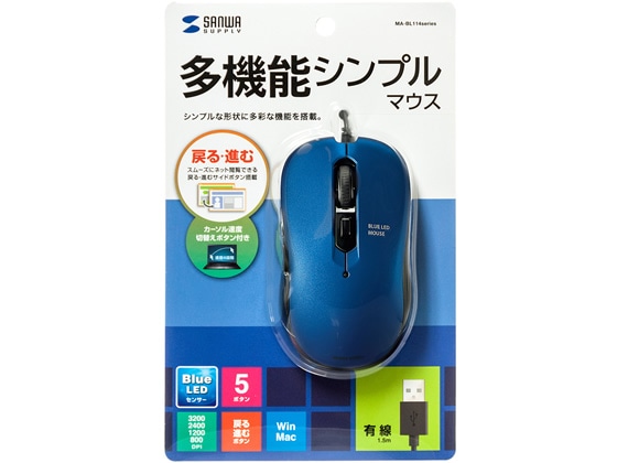 サンワサプライ 有線ブルーLEDマウス ブルー MA-BL114BL 1個(ご注文単位1個)【直送品】