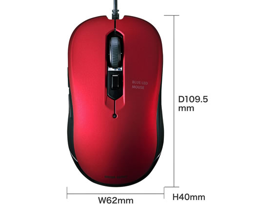 サンワサプライ 有線ブルーLEDマウス レッド MA-BL114R 1個(ご注文単位1個)【直送品】