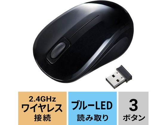 サンワサプライ 抗菌・静音ワイヤレスブルーLEDマウス ブラック 1個(ご注文単位1個)【直送品】
