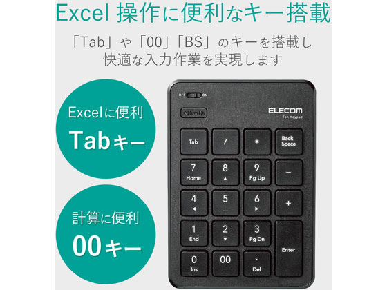 エレコム Bluetoothテンキーパッド 薄型 ブラック TK-TBP020BK 1個(ご注文単位1個)【直送品】