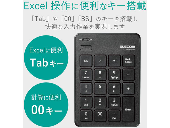 エレコム ワイヤレステンキーパッド 薄型 ブラック TK-TDP019BK 1個(ご注文単位1個)【直送品】
