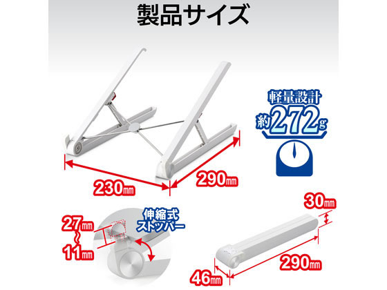 エレコム ポータブルノートPCスタンド 2段階 ホワイト PCA-LTSC2WH 1個(ご注文単位1個)【直送品】