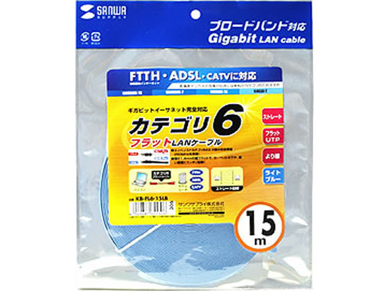 サンワサプライ カテゴリ6フラットケーブル 15m ライトブルー KB-FL6-15LBN 1本(ご注文単位1本)【直送品】