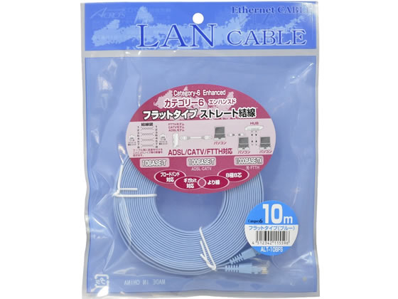 アクロス カテゴリー6 LANケーブル フラットタイプ 10m ブルー ALT10BFS 1本(ご注文単位1本)【直送品】