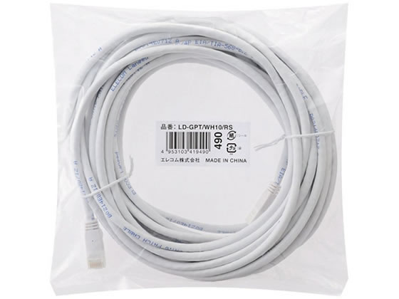 エレコム CAT6対応 LANケーブル 10mホワイト LD-GPT WH10 RS 1本(ご注文単位1本)【直送品】