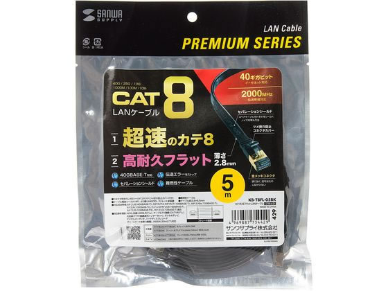 サンワサプライ カテゴリ8フラットLANケーブル ブラック 5m KB-T8FL-05BK 1本(ご注文単位1本)【直送品】