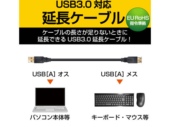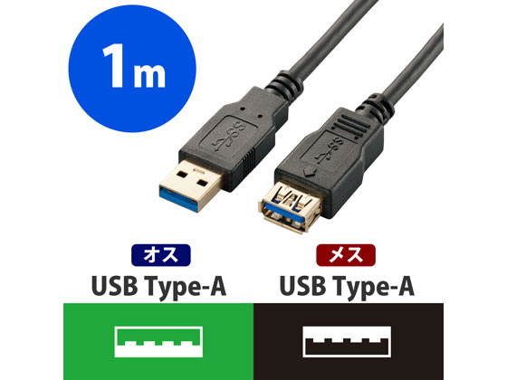 エレコム USB3.0延長ケーブル A-Aタイプ 1m ブラック USB3-E10BK 1本(ご注文単位1本)【直送品】