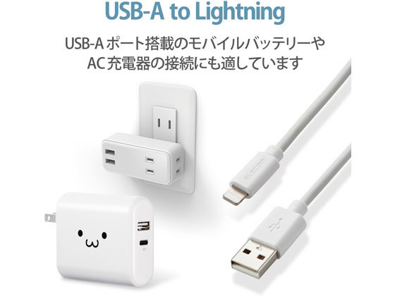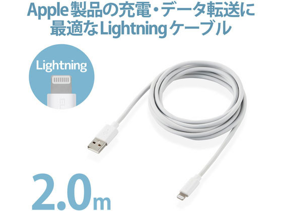 エレコム ライトニングケーブル 2m データ通信 充電 MPA-FUAL20WH 1個(ご注文単位1個)【直送品】