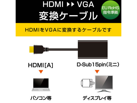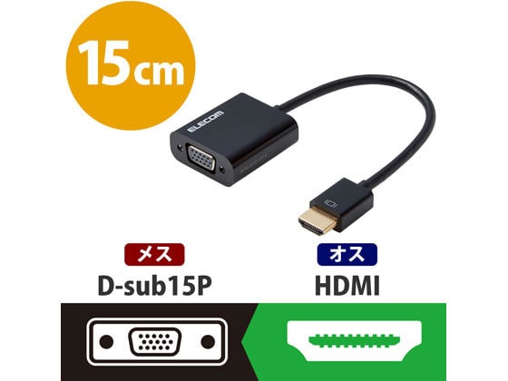 エレコム 変換アダプタ HDMI-VGA ブラック AD-HDMIVGABK2 1個(ご注文単位1個)【直送品】