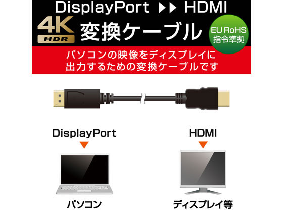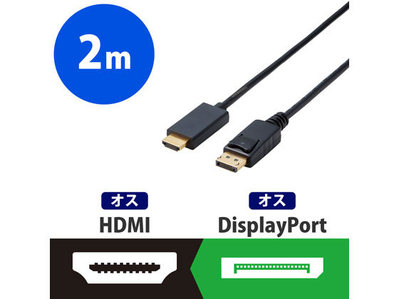 エレコム 変換ケーブル DisplayPort-HDMI 2m CAC-DPHDMI20BK 1個(ご注文単位1個)【直送品】