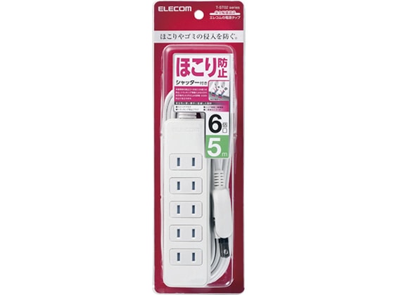エレコム シャッタータップ 2P式6個口 5m ホワイト T-ST02-22650WH 1個(ご注文単位1個)【直送品】