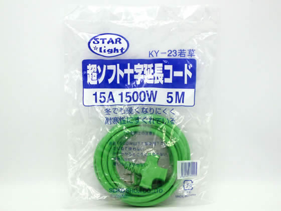 星光商事 カラー超ソフト延長コード 5m グリーン KY-23 1個(ご注文単位1個)【直送品】