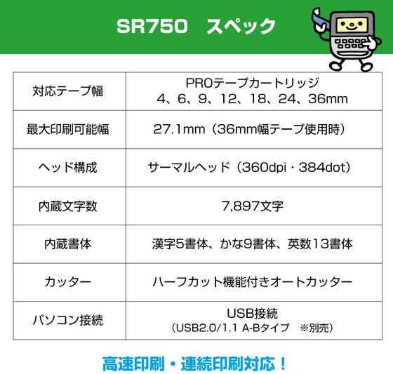 キングジム ラベルライター「テプラ」PRO SR750 SR750 1台(ご注文単位1台)【直送品】