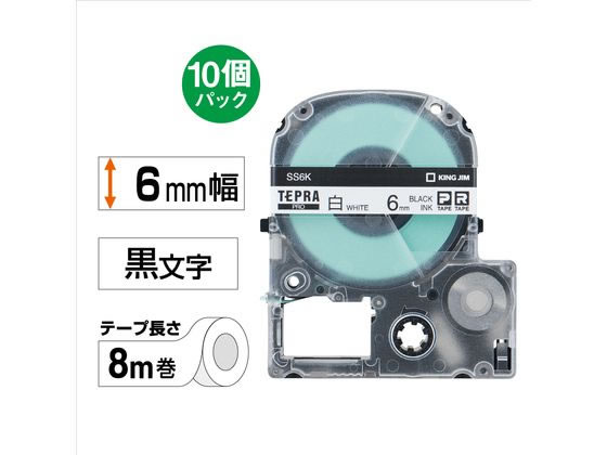 キングジム テプラPROテープ6mm 白/黒文字 10個 SS6K-10PN 1箱(ご注文単位1箱)【直送品】
