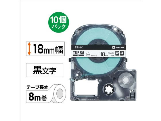 キングジム テプラPROテープ18mm白/黒文字10個 SS18K-10PN 1箱(ご注文単位1箱)【直送品】