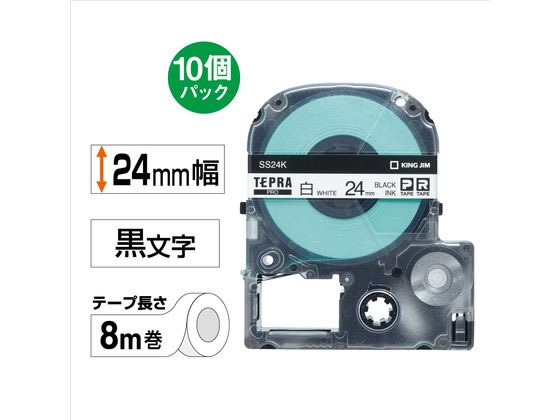 キングジム テプラPROテープ24mm白/黒文字10個 SS24K-10PN 1箱(ご注文単位1箱)【直送品】