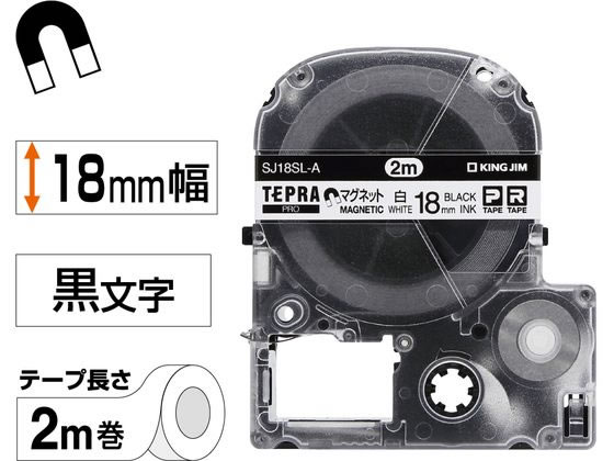 キングジム テプラPROテープ マグネットテープ 18mm 白/黒文字 1個(ご注文単位1個)【直送品】