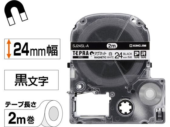 キングジム テプラPROテープ マグネットテープ 24mm 白/黒文字 1個(ご注文単位1個)【直送品】