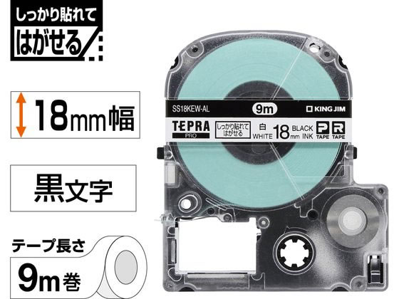 キングジム テプラ しっかり貼れてはがせる 18mm 白/黒字 1個(ご注文単位1個)【直送品】